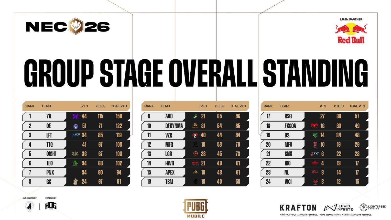 PUBGM Group Stage Overall Standing 🔥